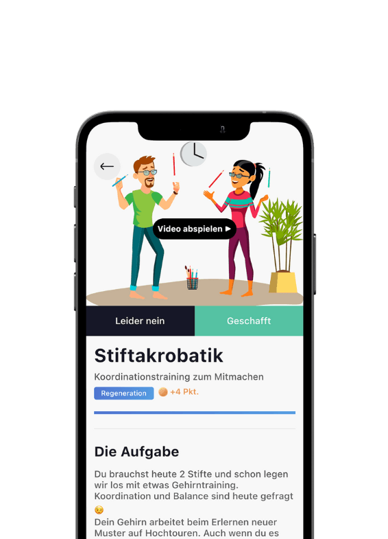 - Tägliche Bewegungs- & Gesundheitsimpulse (inkl. Mini-Workouts & Routinen, 700+ Videos auf Deutsch und Englisch)
